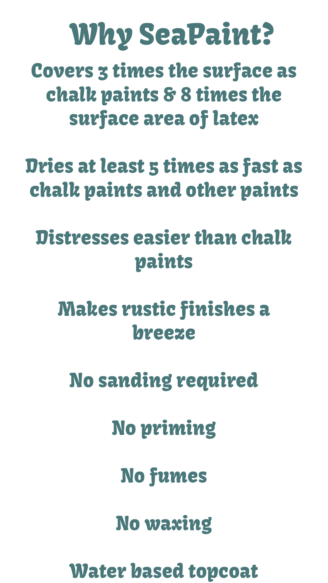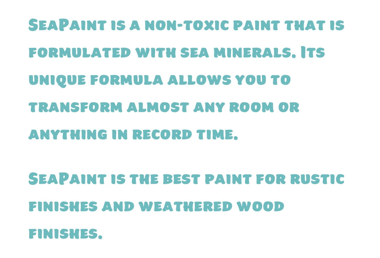 SeaPaint is a non-toxic, quick drying paint that is formulated with sea minerals to make weathered and rustic finishe a breeze. Its unique formula allows you to transform almost any room or anything in record time.